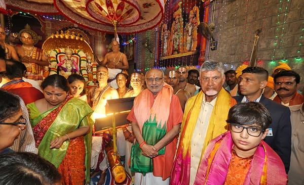 ஆந்திர முதல்வர் சந்திரபாபு நாயுடு திருமலை எம்பெருமானுக்கு பட்டு அங்க வஸ்திரம் காணிக்கையாக தந்து சிறப்பித்தார்.