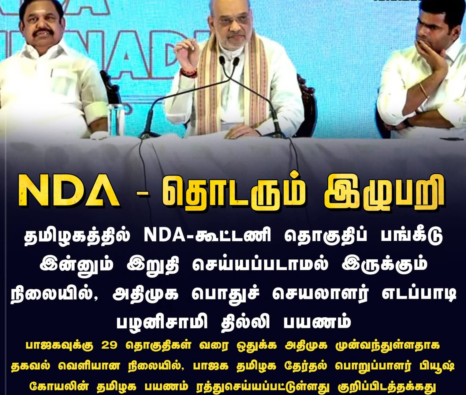 அதிமுக –பாஜக கூட்டணி தேர்தல் திருவிழா பணிகளில் சுறுசுறுப்பு இல்லாமல் சுரத்து இல்லாமல் சைலாண்டாக இருக்கிறது .