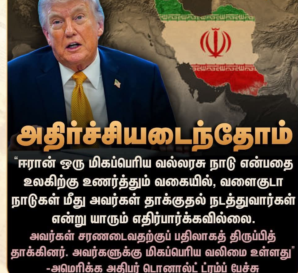 அழம் தெரியாமல் காலை விட்டு முதலை வாயில் மாட்டிகொண்ட கதையாக அமெரிக்க இப்போது ஈரான் போரில் மாட்டிக்கொண்டு என்ன செய்வது என்று தெரியாமல் விழி பிதுங்கி நிற்கிறது.