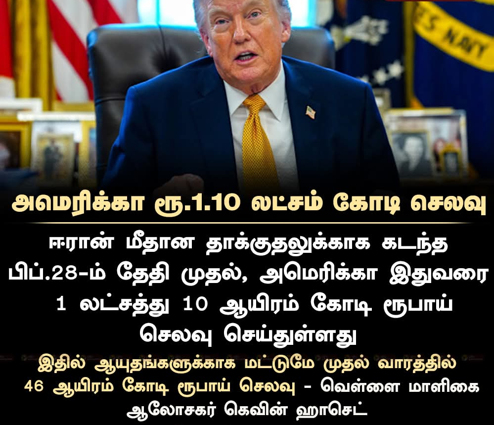 ஈரானில் போர் புரிய 18 லட்சம் கோடி வேண்டும் என்று அமெரிக்க ராணுவம் பென்டகனிடம் கோரியது.