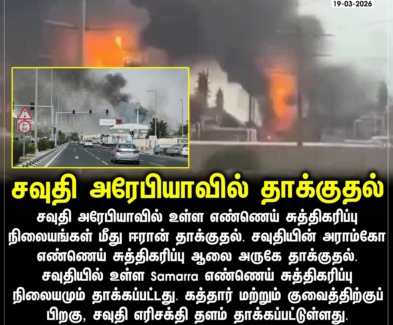 எங்கும் சைரன் சத்தம், கச்சா எண்ணெய் தேக்கி வைக்கும் இடங்கள் எல்லாம் குண்டுகளால் தாக்கப்பட்டதால் எங்கும் புகைமண்டலம் மற்றும் தீஜுவாலையுடன் எரிகிறது. இதனால் காற்று மாசு மற்றும் பலவித புதிய நோய்கள் இந்தியா வரை பரவக்கூடும் என மருத்துவ நிபுணர்கள் எச்சரிக்கை விடுத்துள்ளனர்.