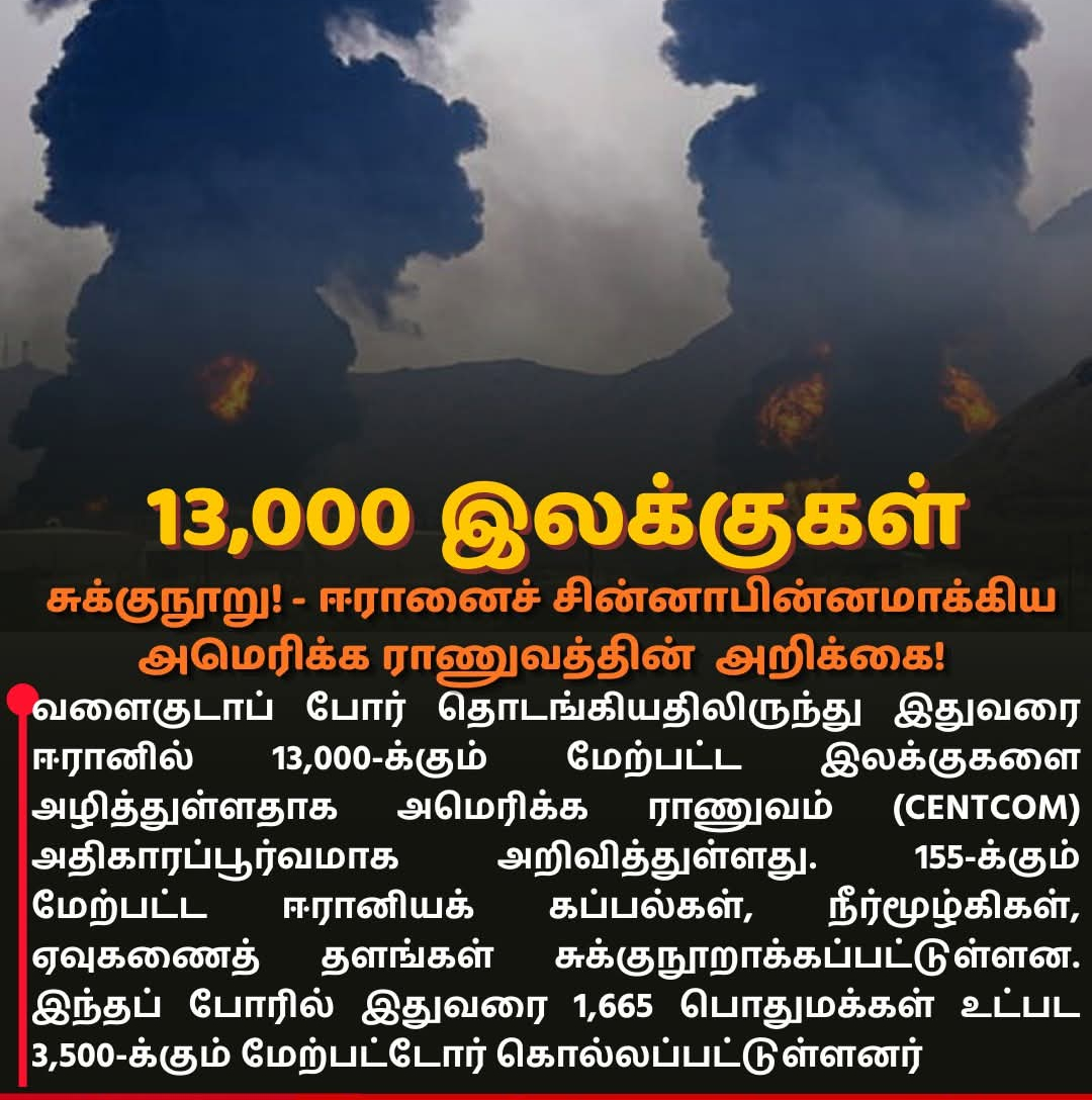 குழந்தைகள் உட்பட ஈரான் ராணுவத்தினர் 3500 பேர் பலி என இந்த போரினால் அமெரிக்கா இஸ்ரேல் சேதப்படுத்தி அழித்தது என தகவல் .